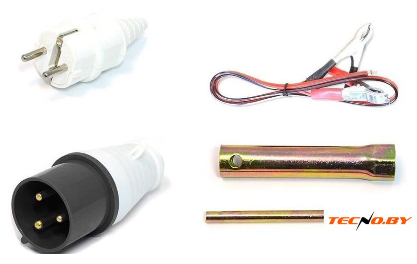 В комплект поставки входят две электрические вилки, комплект проводов и свечной ключ. Эти аксессуары позволяют быстро приступить к работе сразу после доставки устройства.