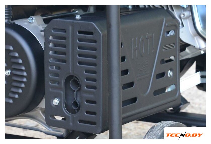 Синхронный генератор оснащен выходом постоянного тока 12 В, розетками 220 В (16 А и 32 А) и встроенной защитой от перегрузки. Для удобства управления на панели находится вольтметр. Отсутствие розеток 380 В компенсируется высокоэффективной работой однофазных устройств.