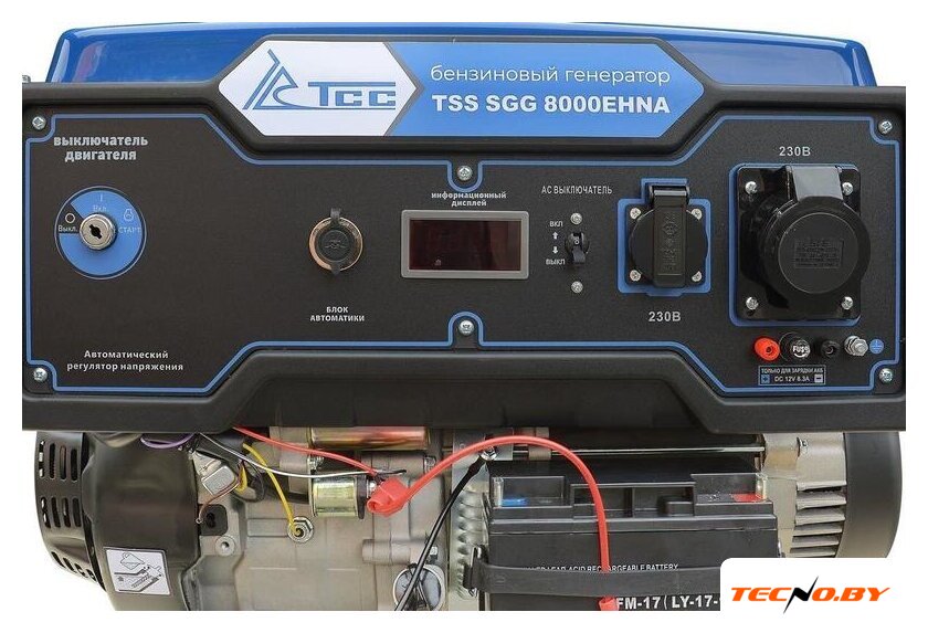 Для подключения потребителей электричества ТСС SGG 8000EHNA предлагает розетки на 220 В (16 А и 32 А). Генератор имеет также возможность подключения устройств на постоянный ток 12 В, что позволяет использовать его для подзарядки аккумуляторов и других нужд.