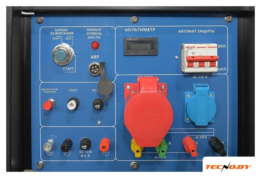 | Комплектация | Автоматический выключатель от перегрузок и короткого замыканияДатчик уровня топливаСчетчик моточасовВольтметрАккумуляторРозетки: 230В – 16А 1 шт. (европейского стандарта) и 400В - 32А 1 шт.(промышленная), что позволяет подключать разные электроинструментыСиловые клеммы (можно с одной розетки получить полную мощность генератора)Выход на 12В для зарядки аккумулятораВилка, для подключения общей нагрузки, 2 шт.Модель оснащена колесным комплектомИнструкция по эксплуатации и гарантийный талон производителя |