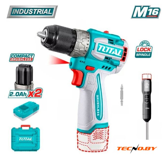 | Комплектация | - Дрель-шуруповерт TDLI16681 - 1 шт.- Аккумулятор TFBLI1620 2,0 А*ч - 2 шт.- Зарядное устройство TFCLI1613 - 1 шт.- Двухсторонняя бита - 1 шт.- Аккумуляторный погружной блендер TOTAL TJB047K - 1 шт.- Кейс |