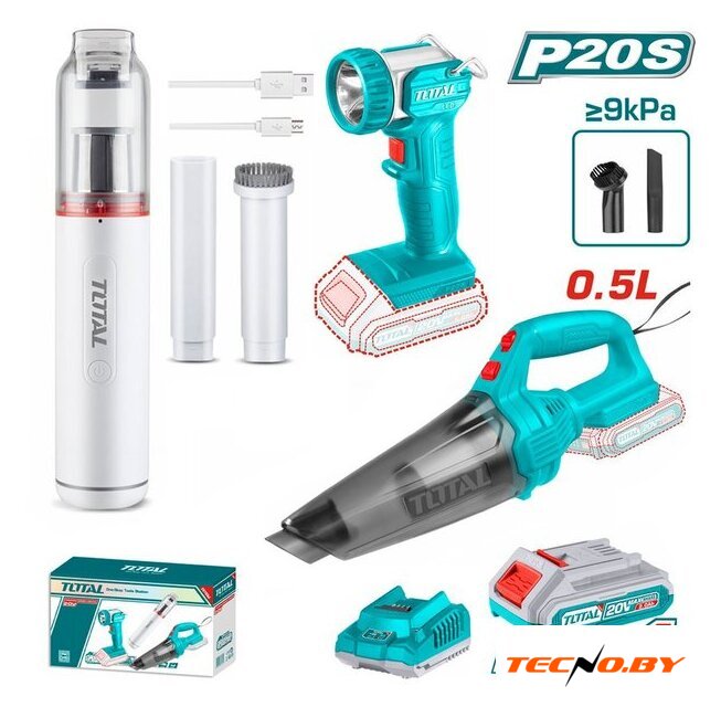 | Комплектация | - Пылесос TOTAL TVLI201261 - 1 шт.- Пылесос TOTAL TVLI1106 - 1 шт.- Фонарь TOTAL TWLI2023 - 1 шт.- Аккумулятор TFBLI20011 2,0 Ач - 1 шт.- Зарядное устройство TFCLI2001 - 1 шт.- Прямая насадка для TVLI1106 - 1 шт.- Щетка для пыли с мягкой щетиной для TVLI1106 - 1 шт.- Щелевая насадка TVLI201261 - 1 шт.- Щетка для пыли с мягкой щетиной TVLI201261 - 1 шт.- USB кабель для зарядки TVLI1106 - 1 шт.- Коробка |