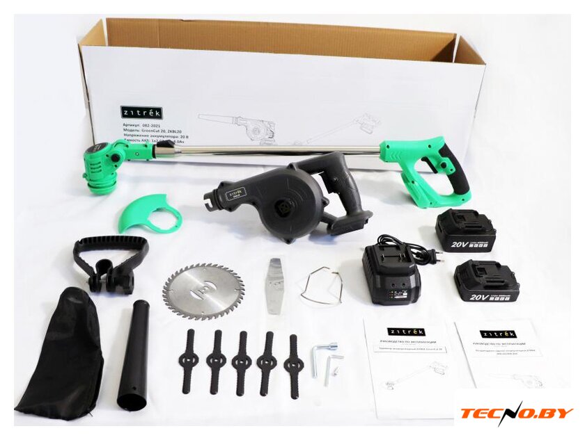 | Комплектация | Триммер GreenCut 20:Триммер - 1 шт.Режущий диск - 1 шт.Пластиковые ножи - 5 шт.Металлический нож - 1 шт.Защитный кожух - 1 шт.Металлическая скоба - 1 шт.Дополнительная рукоятка - 1 шт.Шестигранный ключ - 1 шт.Ключ торцовочный - 1 шт.Винт - 1 штРуководство по эксплуатации - 1 шт.Воздуходувка ZKBL20:Воздуходувка - 1 шт.Насадка-труба - 1 шт.Мешок для сбора пыли - 1 шт.Руководство по эксплуатации - 1 шт.Аккумулятор 2,0 Ач - 1 шт.Аккумулятор 4,0 Ач - 1 шт.Зарядное устройство - 1 шт. |