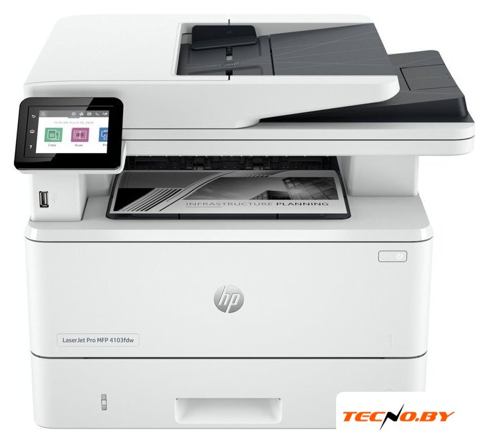 | Комплектация | МФУ HP LaserJet Pro 4103fdw; предустановленный оригинальный лазерный картридж для HP LaserJet, черный (3050 страниц); руководство по началу работы; листовка с информацией о поддержке; руководство по гарантии; листовка с нормативными требованиями; кабель питания; кабель USB |