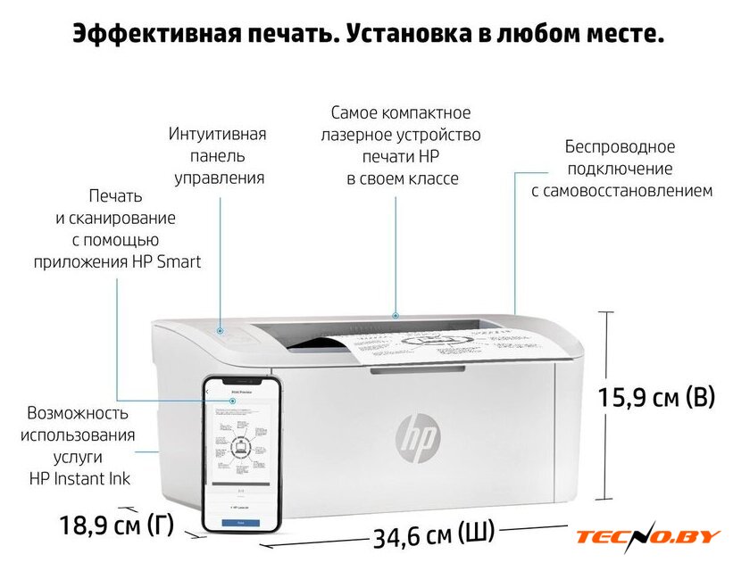принтер, лазерный, черно-белый, формат A4 (210x297 мм), скорость ч/б печати 28 стр/мин, разрешение 1200 dpi, Wi-Fi