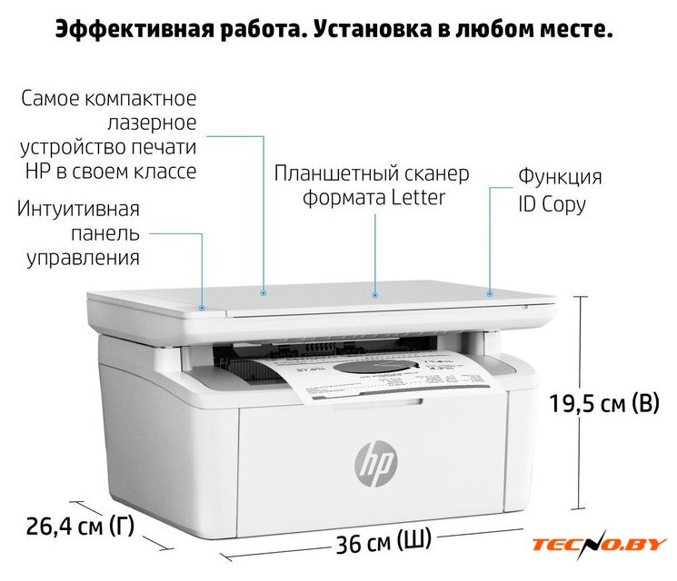МФУ, лазерный, черно-белый, формат A4 (210x297 мм), скорость ч/б печати 22 стр/мин, разрешение 1200 dpi, Wi-Fi