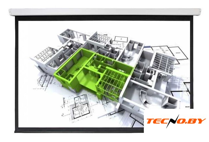 234x146 см, 109" 16:10, стационарный, рулонный моторизированный, настенный, покрытие матовое белое 1:1
