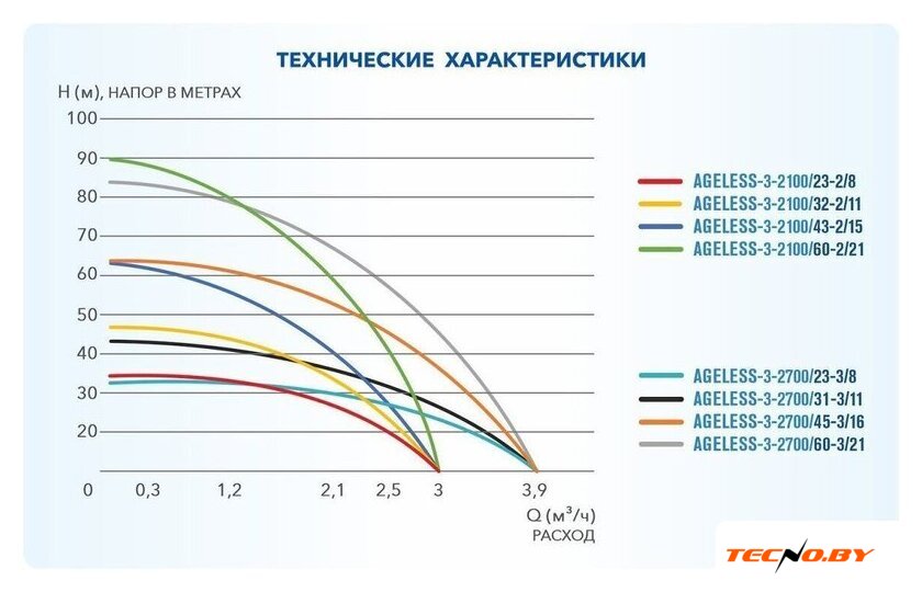 3.6 м³/ч, напор 64 м
