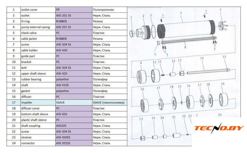 | Метод установки | погружной |