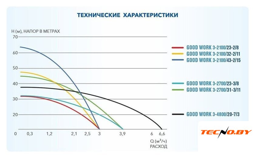3.6 м³/ч, напор 44 м