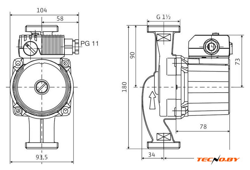 циркуляционный, 11.1 м³/ч, напор 12 м, давление 10 бар