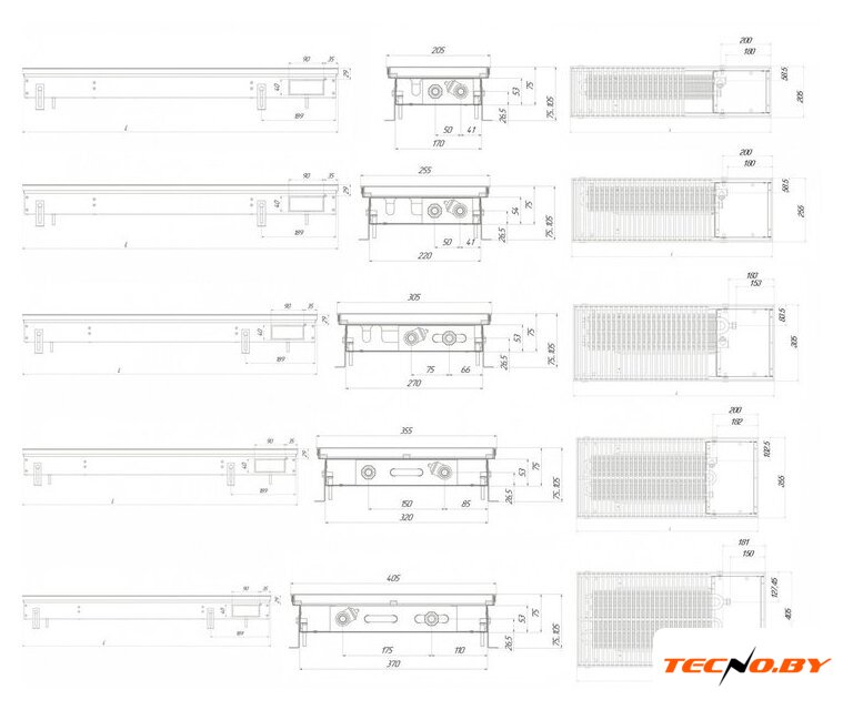 встраиваемый конвектор, ΔТ = 70 K: 1726 Вт, высота: 105 мм, посадочный диаметр: 1/2"
