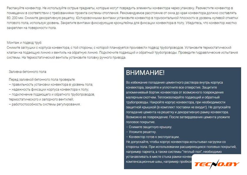 конвектор напольный, ΔТ = 70 K: 2077 Вт, высота: 240 мм, посадочный диаметр: 1/2"