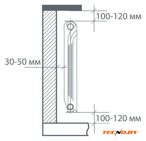 алюминиевый, ΔТ = 70 K: 1890 Вт, высота: 570 мм