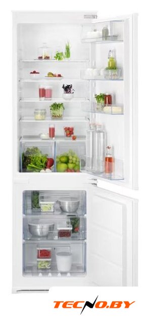 встраиваемый, скользящие направляющие, без No Frost, электронное управление, полезный объём: 271 л (198 + 73 л), перенавешиваемые двери, лоток для яиц, 54x54.9x177.2 см, белый