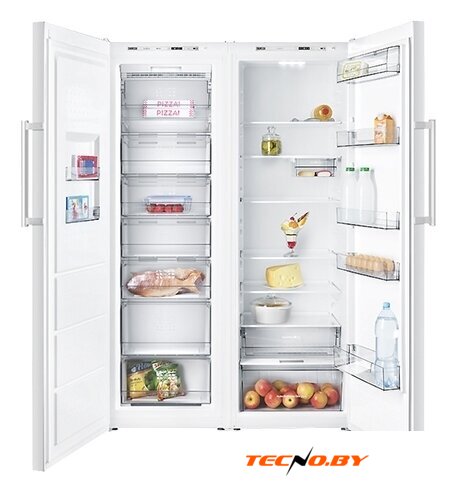 отдельностоящий, полный No Frost, сенсорное управление, класс A++, полезный объём: 384 л (277 + 107 л), инверторный компрессор, зона свежести, перенавешиваемые двери, складная полка, лоток для яиц, 59.5x68.2x203 см, белый