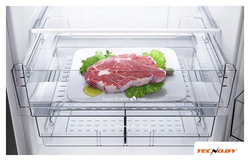 Электронное управление при помощи внешнего LED-дисплея предлагает разнообразные режимы, включая суперзаморозку, суперохлаждение, режим "отпуск" и Eco-режим. Устройство оборудовано функцией индикации температуры, сигналом открытой двери и блокировкой управления от детей. В коробке также вы найдете удобные аксессуары, такие как складная полка, полка для вина и лоток для яиц.