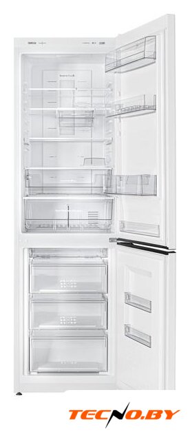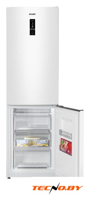 Атлант поражает своими вместительными отсеками: холодильная камера объемом 247 литров включает в себя зону свежести на 21 литр для ваших фруктов и овощей, тогда как морозильная камера вместимостью 121 литр предлагает три отделения для заморозки. Передовая конструкция с полным No Frost избавит вас от необходимости разморозки.