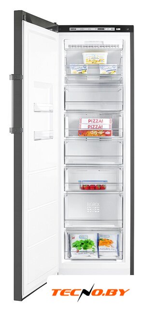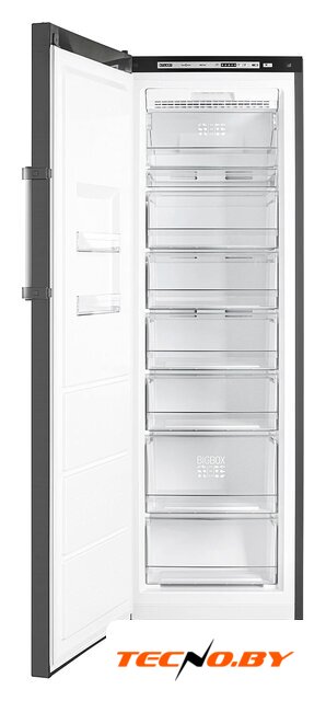 Этот отдельностоящий морозильник выполнен в стильном цвете "темная сталь", который придаст вашему интерьеру современный вид. Конструкция устройства основывается на системе охлаждения No Frost, что исключает необходимость размораживания. Модель оснащена одним компрессором и не имеет зоны свежести, что делает его простым и удобным в использовании.