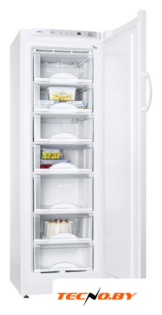 Энергоэффективный класс A+, низкий уровень шума всего в 39 дБ и годовой расход электроэнергии в 265 кВт·ч делают этот морозильник не только производительным, но и экономичным. Он успешно справляется с замораживанием до 24 кг продуктов в сутки, а система суперзаморозки позволяет быстро охлаждать свежие продукты.