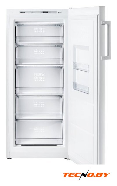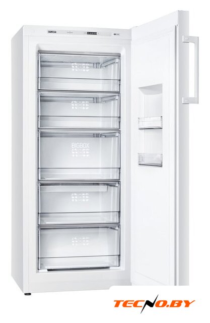 Управление морозильником осуществляется при помощи удобного электронного блока, расположенного внутри устройства. Это позволяет легко настраивать и регулировать температуру по вашему усмотрению. Хоть дисплей и отсутствует, заданная индикация температуры обеспечивает сохранность продуктов и помогает поддерживать оптимальные условия для хранения.