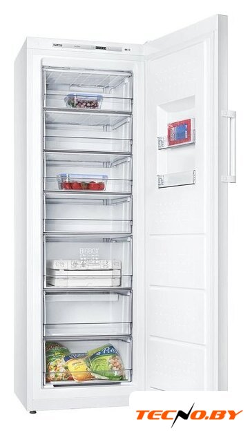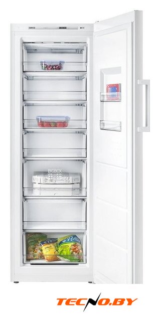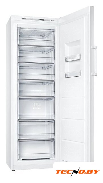 Функциональное управление прибором осуществляется электронным способом, что гарантирует простоту и удобство в настройке. Несмотря на отсутствие дисплея, вы всегда будете в курсе актуальной температуры внутри морозильника благодаря функции индикации заданной температуры. Модель оснащена полезной функцией сигнала открытой двери, что предупреждает потерю холода.