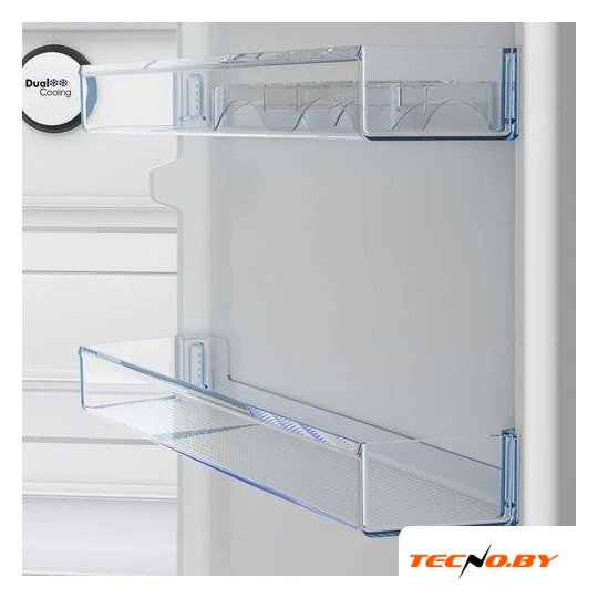 Внутри холодильной камеры вас ждет разнообразие для организации пространства с 4 стеклянными полками. Три дверных балкона из пластика позволяют легко хранить бутылки и соусы, а специальный ящик для овощей и фруктов способствует их долговременному хранению. Также есть комплектующий лоток для яиц, гарантирующих удобство использования.