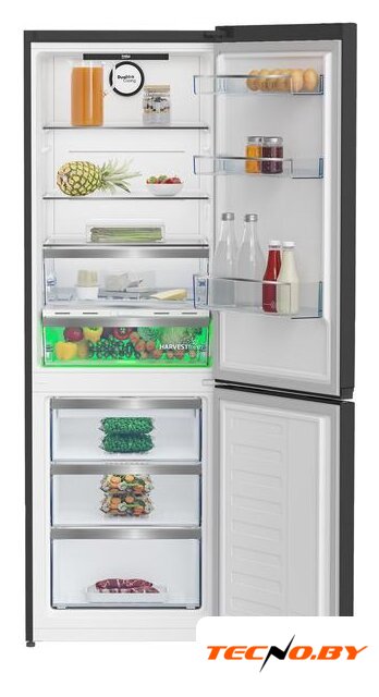 Устройство оснащено системой полного No Frost, что избавит вас от необходимости разморозки. Зона свежести в 25 литров и сигнал открытой двери добавляют безопасности и удобства использования. Дополнительный лоток для яиц - еще один приятный бонус.