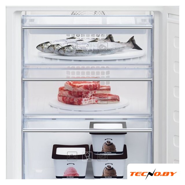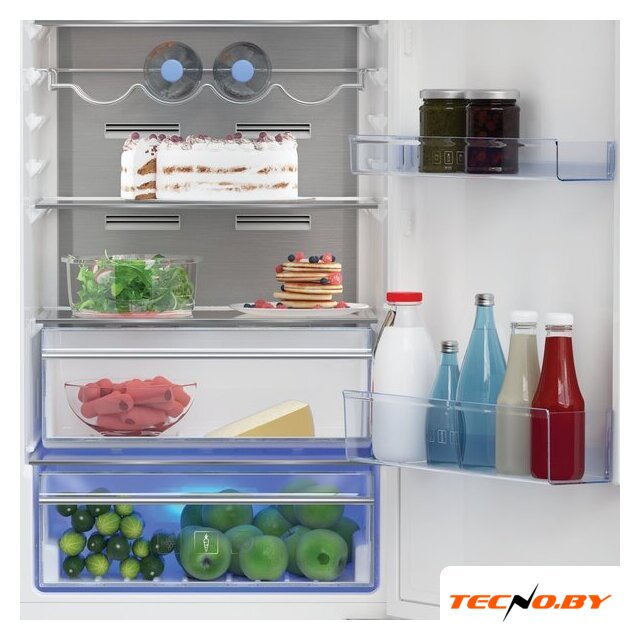 встраиваемый, No Frost (морозильная камера), электронное управление, класс A+, полезный объём: 243 л (180 + 63 л), перенавешиваемые двери, лоток для яиц, 54x54.5x177 см, белый