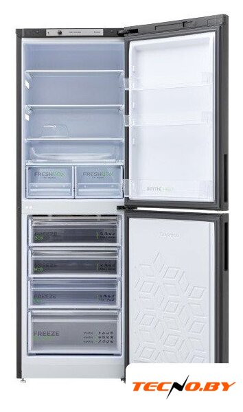 Бирюса W6131 предлагает оптимальное распределение пространства с общей полезной вместимостью 345 литров. Холодильная камера объемом 210 литров оснащена четырьмя стеклянными полками и двумя ящиками для овощей и фруктов с возможностью регулировки влажности, что позволит вашим продуктам оставаться свежими дольше. Морозильная камера объемом 135 литров разделена на четыре отделения, что обеспечивает удобное хранение разносортных замороженных продуктов.