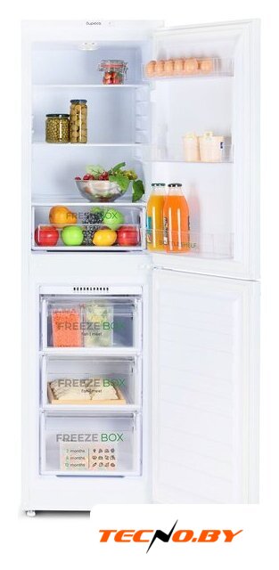 отдельностоящий, без No Frost, механическое управление, класс A, полезный объём: 245 л (194 + 51 л), лоток для яиц, 60x63x145 см, белый
