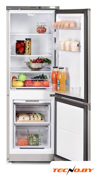 отдельностоящий, без No Frost, механическое управление, класс A, полезный объём: 168 л (110 + 58 л), перенавешиваемые двери, лоток для яиц, 48x60.5x165 см, белый