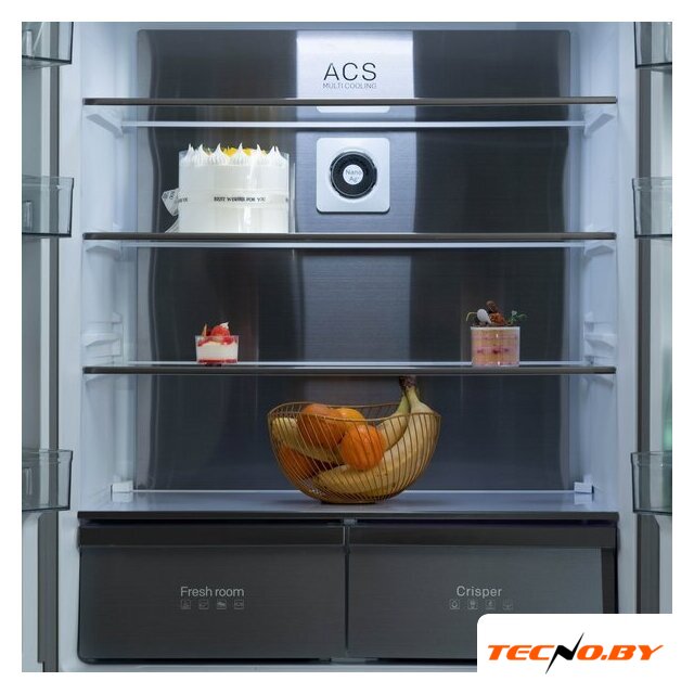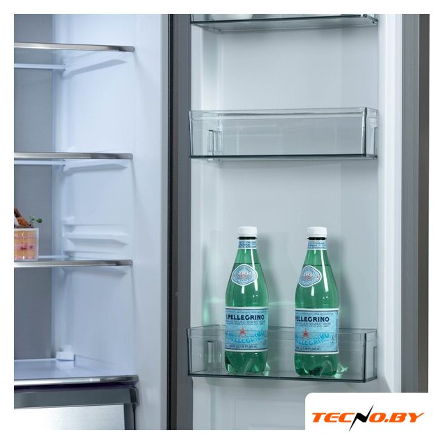 отдельностоящий, полный No Frost, сенсорное управление, класс A++, полезный объём: 480 л (316 + 164 л), инверторный компрессор, лоток для яиц, отделка: стекло, 90x59x177 см, черный