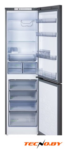 отдельностоящий, без No Frost, электронное управление, класс A+, полезный объём: 324 л (205 + 119 л), зона свежести, перенавешиваемые двери, полка для вина, лоток для яиц, 59.5x62.9x186.8 см, серебристый