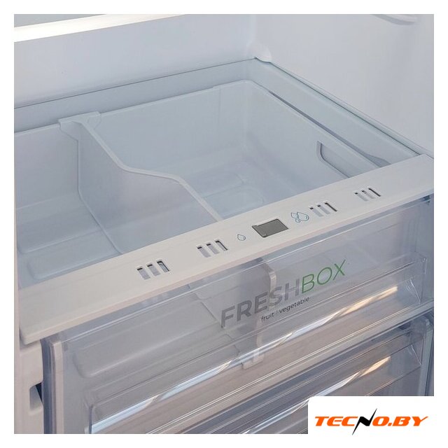 В холодильной камере вас ждут 4 стеклянные полки, балконы из пластика на дверце и 2 ящика для овощей и фруктов. Регулировка влажности помогает сохранять свежесть плодов максимально долго. В комплектацию входят складная полка и лоток для яиц, добавляя мобильности и удобства в хранении различных продуктов.