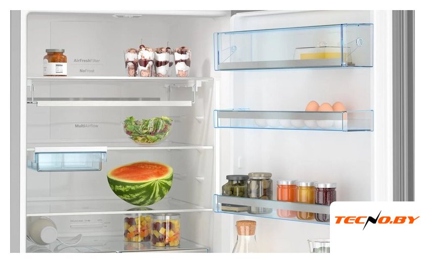отдельностоящий, No Frost (морозильная камера), сенсорное управление, класс A+++, полезный объём: 360 л (266 + 94 л), инверторный компрессор, перенавешиваемые двери, складная полка, полка для вина, лоток для яиц, отделка: защита от отпечатков, 59.7x67.5x201.5 см, темная сталь