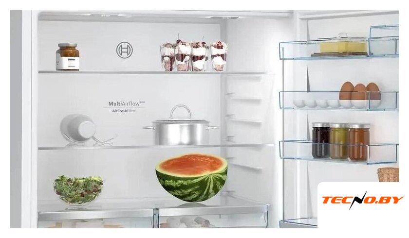 отдельностоящий, No Frost (морозильная камера), сенсорное управление, класс A+++, полезный объём: 349 л (255 + 94 л), инверторный компрессор, зона свежести, перенавешиваемые двери, складная полка, лоток для яиц, отделка: защита от отпечатков, 59.5x67.5x201.5 см, нержавеющая сталь