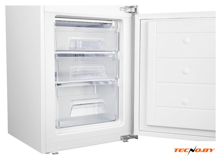 встраиваемый, скользящие направляющие, без No Frost, электронное управление, класс A+, полезный объём: 269 л (192 + 77 л), инверторный компрессор, 54x55x178.5 см, белый