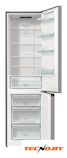 отдельностоящий, полный No Frost, электронное управление, класс A+, полезный объём: 357 л (211 + 125 л), зона свежести, перенавешиваемые двери, автодоводчик дверей, складная полка, полка для вина, выдвижной/подвесной контейнер, лоток для яиц, 59.5x66x206.8 см, серебристый