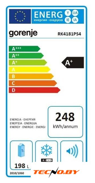 Эта модель имеет класс энергоэффективности A+, что обеспечивает низкое потребление электроэнергии — всего 248 кВт·ч в год. Это помогает заботиться не только о вашем бюджете, но и об окружающей среде. Несмотря на отсутствие инверторной технологии, холодильник работает тихо — уровень шума составляет всего 39 дБ.