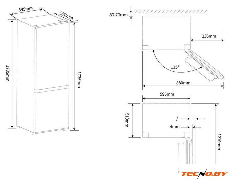 отдельностоящий, полный No Frost, электронное управление, класс A+, полезный объём: 329 л (235 + 94 л), зона свежести, перенавешиваемые двери, лоток для яиц, 59.5x66x196.8 см, серебристый