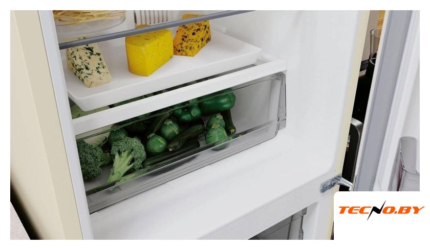 Холодильник предлагает полезный объем в 298 литров, разделенный между холодильной камерой (220 литров) и морозильной (78 литров). Стеклянные полки и пластиковые дверные балконы предоставляют гибкость в размещении продуктов. Компактные встроенные ручки и перенавешиваемые двери добавляют удобства в использовании. Вместе с этим, в вашем распоряжении находятся три отделения морозильной камеры и удобный ящик для овощей и фруктов.