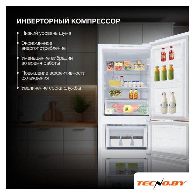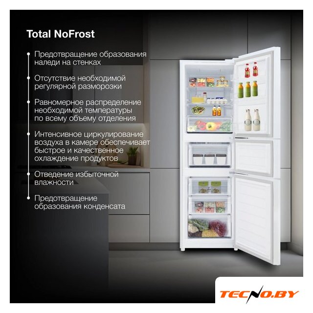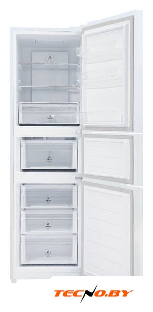 отдельностоящий, полный No Frost, электронное управление, класс A++, полезный объём: 360 л (256 + 104 л), инверторный компрессор, зона свежести, перенавешиваемые двери, лоток для яиц, 59.5x66x201 см, белый