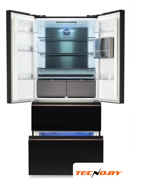 отдельностоящий, полный No Frost, сенсорное управление, класс A+, полезный объём: 451 л (302 + 149 л), инверторный компрессор, 79.5x69.2x180 см, черный