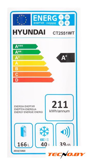 Hyundai CT2551WT — это союз энергосбережения и продуктивности. Класс энергоэффективности A+ гарантирует, что ваш холодильник будет расходовать всего 211 кВт·ч в год, что добавляет экономии вашему семейному бюджету и заботится об экологичности. А при отключении электричества этот холодильник способен сохранять прохладу до 8 часов — отличный показатель в своем классе! 🌿