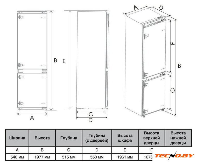 встраиваемый, без No Frost, механическое управление, полезный объём: 208 л, перенавешиваемые двери, лоток для яиц, 54x54.9x122.5 см