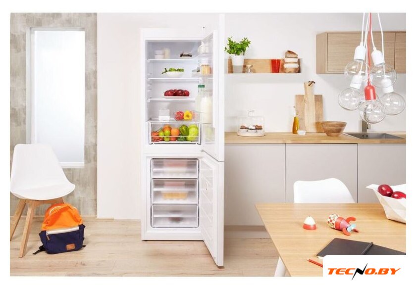 Indesit DS 4180 W предлагает значительное пространство для хранения ваших продуктов. Холодильная камера объемом 224 л позволяет разместить продукты на четырех стеклянных полках, а также в четырех пластиковых дверных балконах. Кроме того, вы найдете два ящика для овощей и фруктов, сохраняя их свежесть на долгое время. А вот в морозильной камере с тремя отделениями и полезным объемом 87 л можно надежно замораживать до 4 кг продуктов в сутки. 🥦🧊