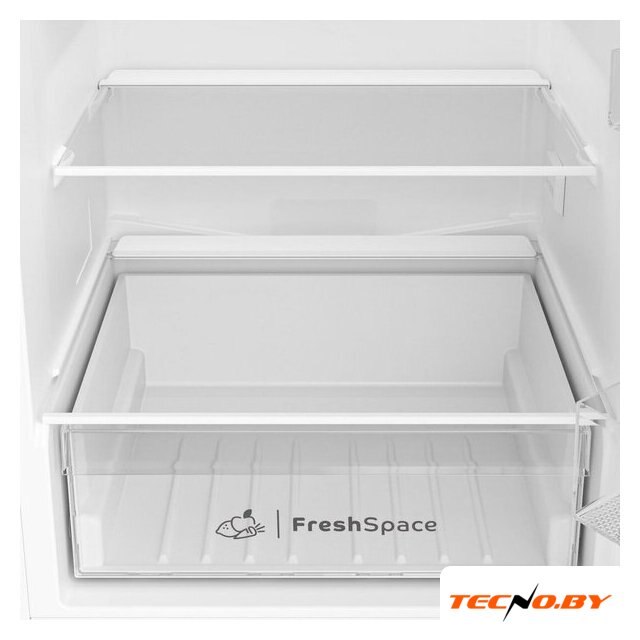 Холодильная камера оборудована четырьмя стеклянными полками и тремя пластмассовыми дверными балконами. Дополнительный ящик для овощей и фруктов позволяет сохранить их свежесть на протяжении долгого времени. Приятным дополнением станет лоток для яиц, отличающийся практичностью.