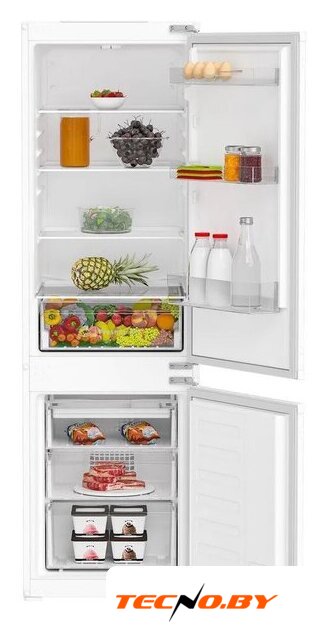 встраиваемый, No Frost (морозильная камера), механическое управление, класс A+, полезный объём: 262 л (193 + 69 л), перенавешиваемые двери, лоток для яиц, 54x54.5x177 см, белый