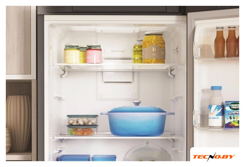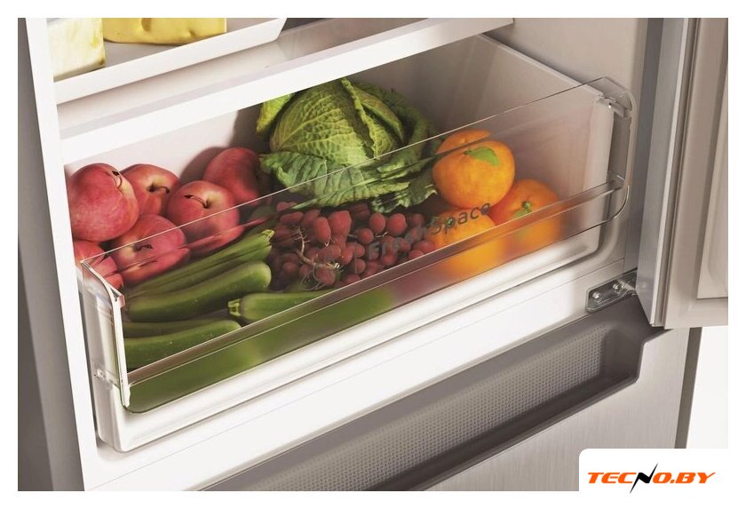 Вы найдете четыре прочные стеклянные полки и четыре пластмассовых дверных балкона, готовых размещать все от молочных продуктов до напитков. Специальный ящик для овощей и фруктов позаботится о свежести ваших продуктов. Для дополнительного удобства лоток для яиц идет в комплекте.